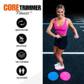 The Core Trimmer Fitness System takes your core training to the next level by delivering the smoothest rotation of any abdominal training disk in the market. Uniquely designed without bearings or rollers, the Core Trimmer rotates smoother than competitor disks. The attached rubberized backing firmly grips a variety of surfaces and protects your floors from scratches.